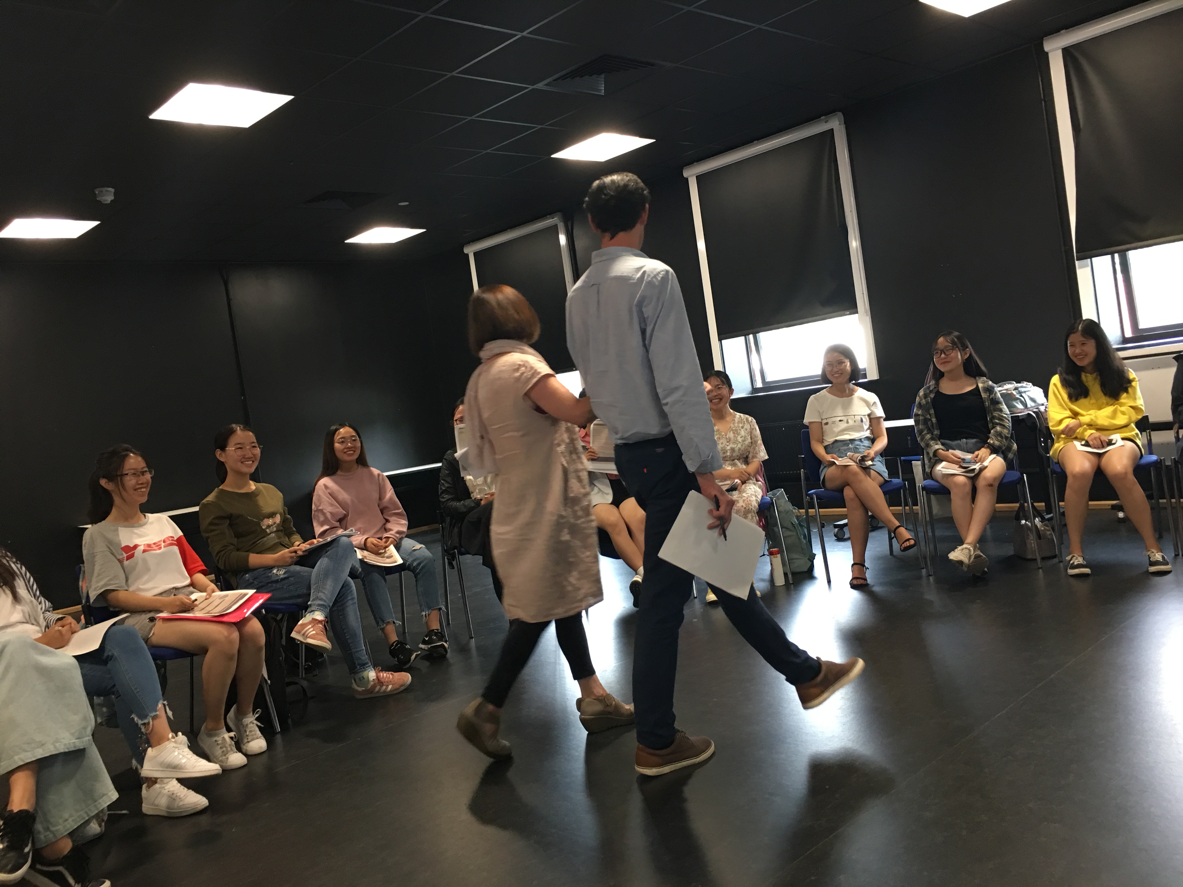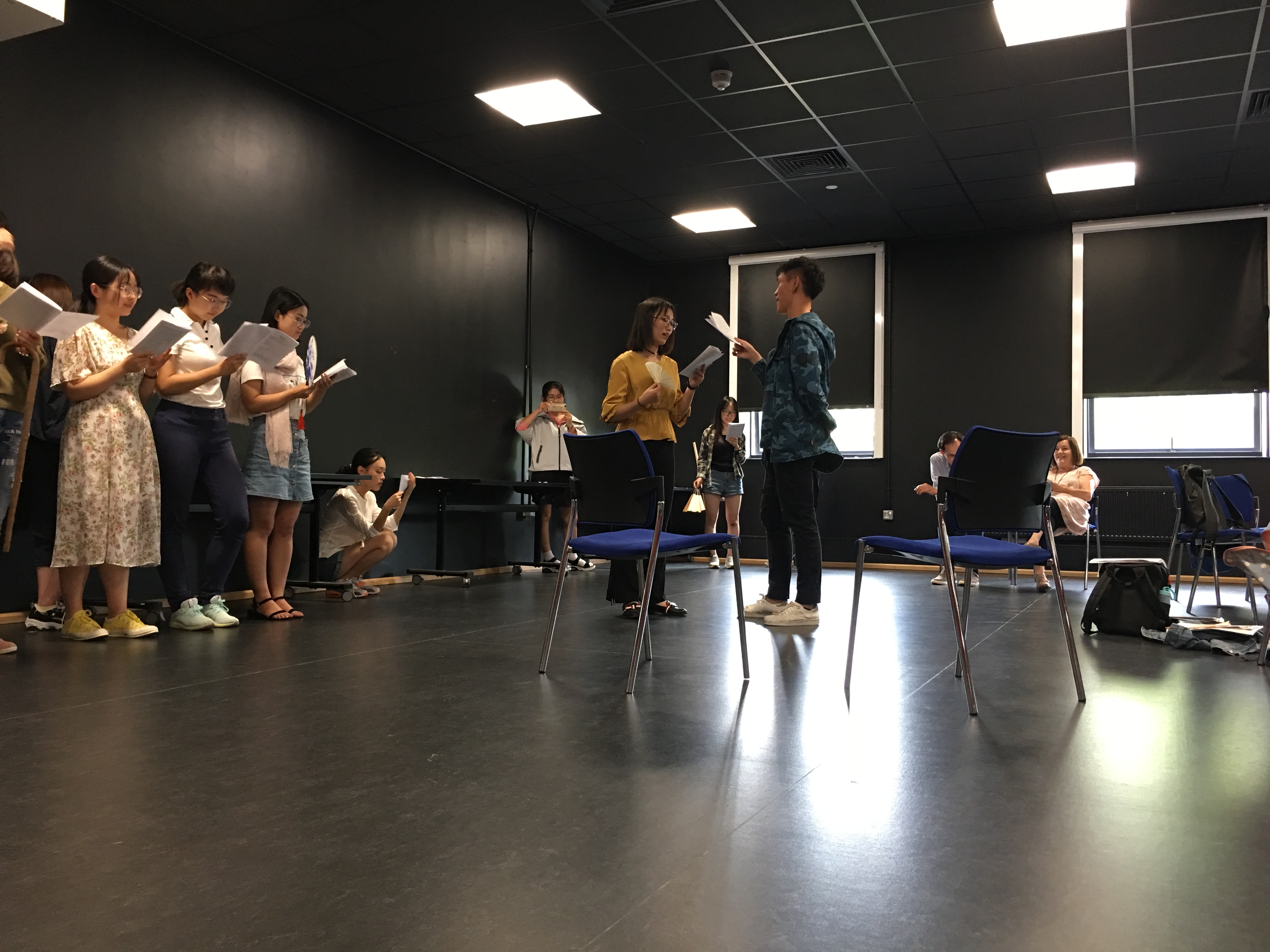 第二周周三上午,DavidCathy两位老师一起在Drama Studio为同学们上了戏剧课。首先David老师讲解了时代背景、王尔德生平、戏剧情节、人物分析等,为同学们把握剧本、表演戏剧打下了坚实的基础。随后,Cathy老师结合视频,教大家如何说一口非常posh的英语。最后留给大家30分钟排练戏剧,同学们用着Cathy精心准备的道具,都有着充分的情感投入和动作表情,演出非常成功,全体同学和两位老师都很享受这一上午的学习与创造。
