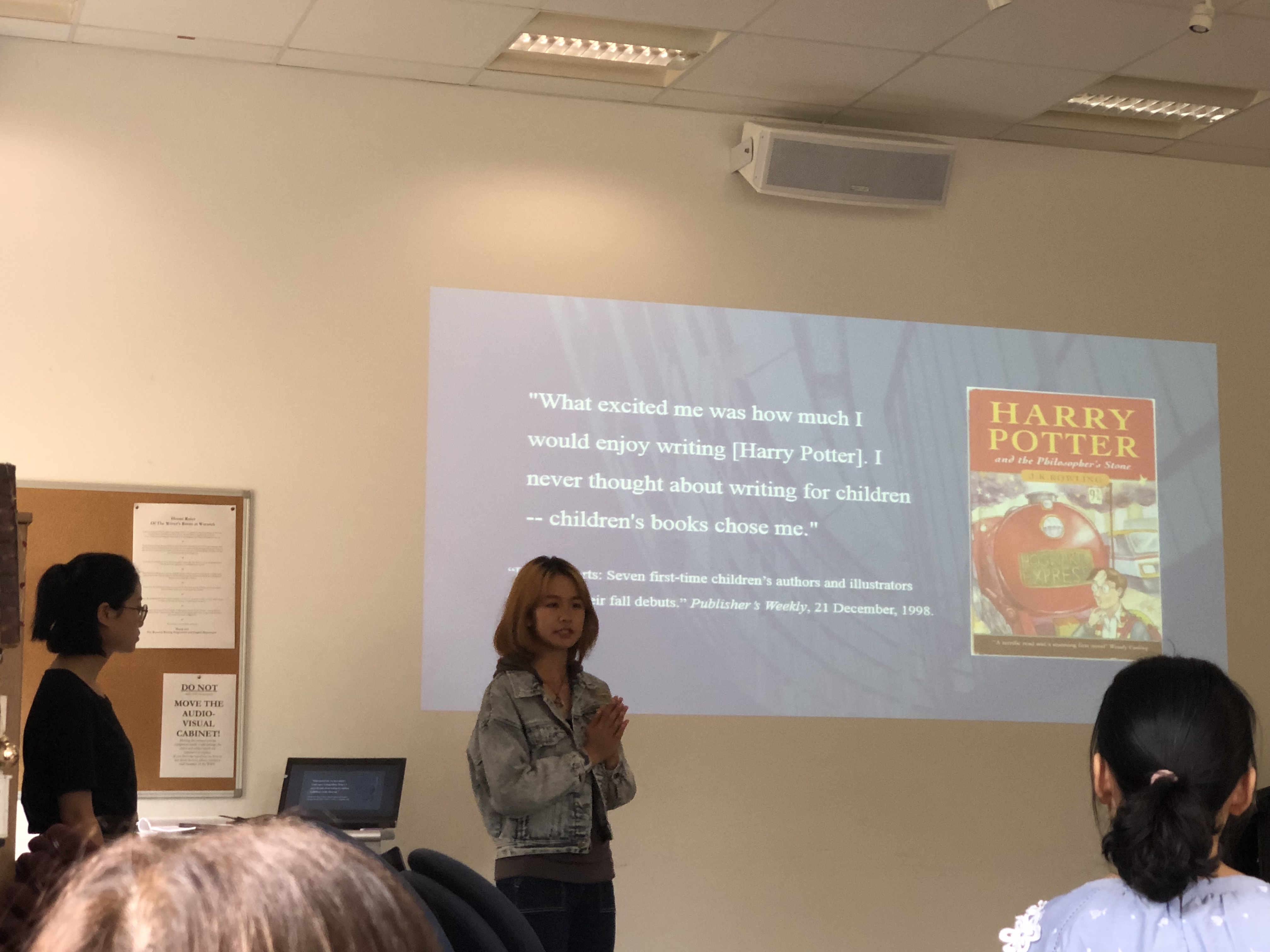 第一周的作业是抽签选定英国的某个文学发展时期,做一个5-8分钟的presentation,经过Cathy一个星期的课堂教学,同学们的展示采用了多种多样的形式,包括对话、表演、视频和猜谜等。亲身参与和聆听同伴的讲解使大家进一步了解了英国文学发展过程,也为后期的英国文学学习奠定了坚实的基础。