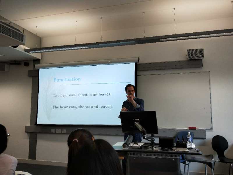 在学术写作技巧课上,David向同学们发放了一些有关formal English(正式体英语)的讲义,包括单词和词组等内容,并且配合适量的练习使同学们适应在论文写作中使用更加正式、规范的英文表达,同学们获益匪浅。