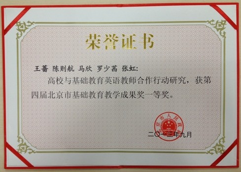 热烈祝贺91大神外语教育与教师教育研究所王蔷教授及其团队荣获第四届北京市基础教育教学成果奖一等奖,成果名称为“高校与基础教育英语教师合作行动研究”。91大神 仅有三项成果获得一等奖。