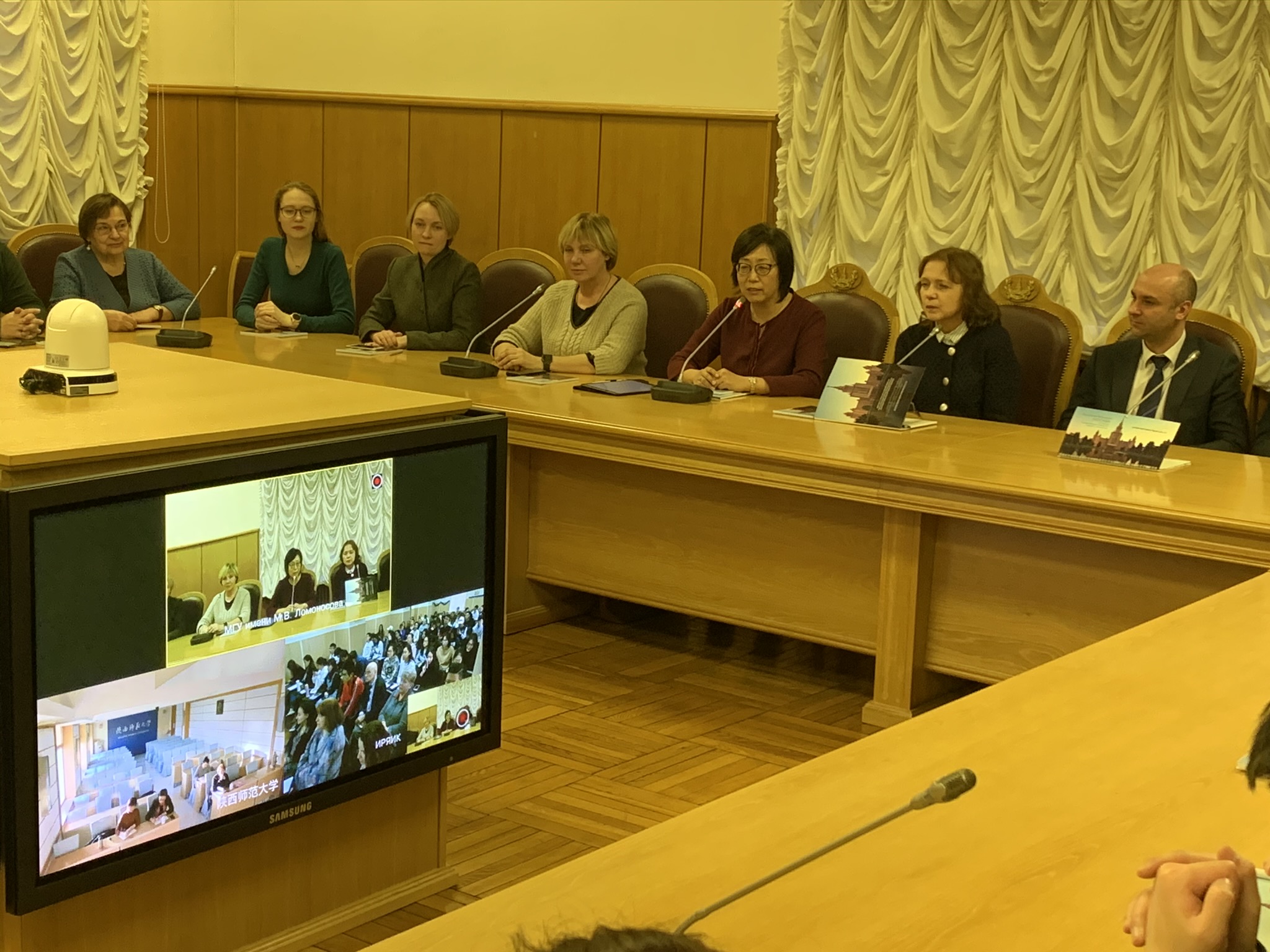 2019年12月26日,在莫斯科大学主楼召开俄语教师技能提升工作视频会议。视频会议设莫斯科大学主楼、莫斯科大学俄语文化学院、陕西师范大学三个分会场。参加会议的有莫斯科大学副校长塔·弗·科尔塔娃、莫斯科大学副校长尤·阿·马泽伊、北师大-莫斯科大学俄语教师联合发展中心中方主任刘娟、俄方主任瓦·弗·恰斯内赫、陕西师范大学代表以及莫斯科大学俄语文化学院的师生代表。视频会议由莫斯科大学副校长塔·弗·科尔塔娃主持。