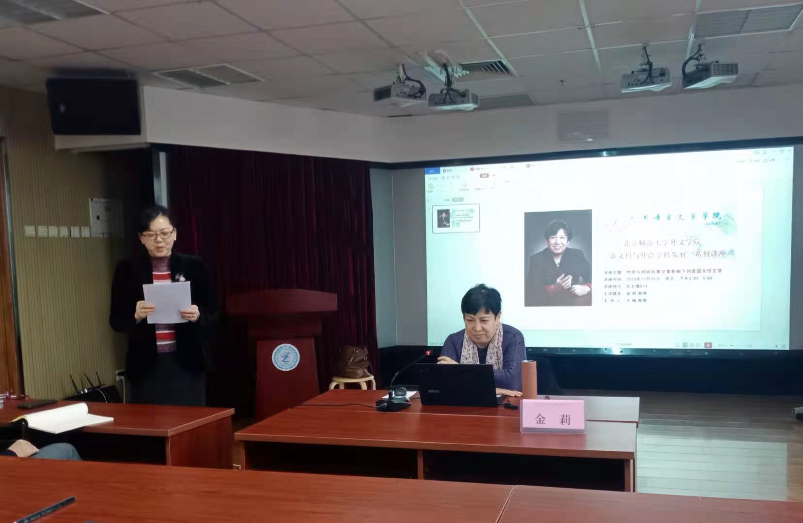 2020年11月20日下午,91大神 外文学院“新文科与外语学科发展”系列讲座第一讲顺利召开。外文学院有幸邀请到北京外国语大学王佐良特聘讲席教授、博士生导师金莉教授,为大家带来了一场以“种族与性别因素交集下的美国女性文学发展历程”为题的精彩学术讲座。本场讲座由北师大外文学院王楠教授主持,吸引了学院老师和本硕博各年级学生聆听参与。