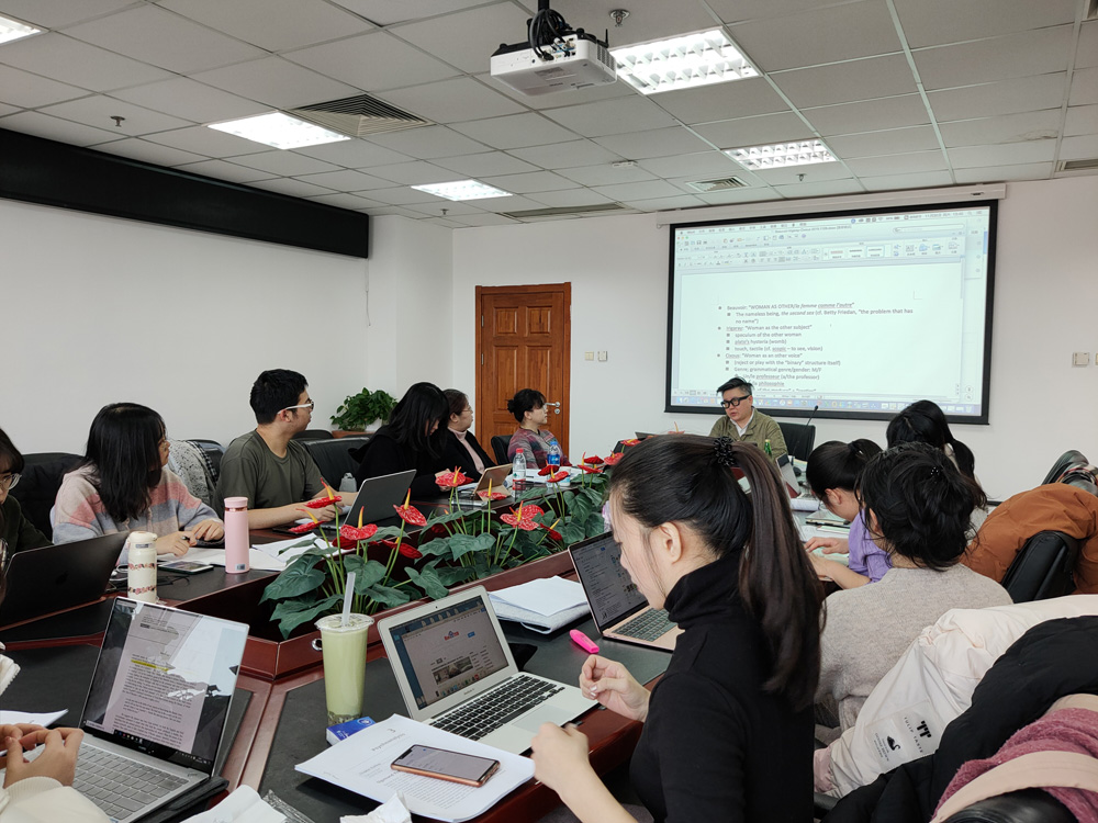 讲座中,Prof. Lee梳理了从波伏娃到巴特勒等人的性别研究,不仅勾勒出酷儿理论的发展脉络,同时,将拉康、伊利格瑞、西苏、福柯、德里达、弗洛伊德等人的经典著作串起来,理论与文本相结合,对弗吉尼亚·伍尔夫的经典作品《一间自己的房间》和《奥兰多》进行了深度探讨和阐释。另外,Prof. Lee从后殖民主义、女性主义和酷儿理论等角度详细分析了一元论局限性,并评析了解构主义的功与过。