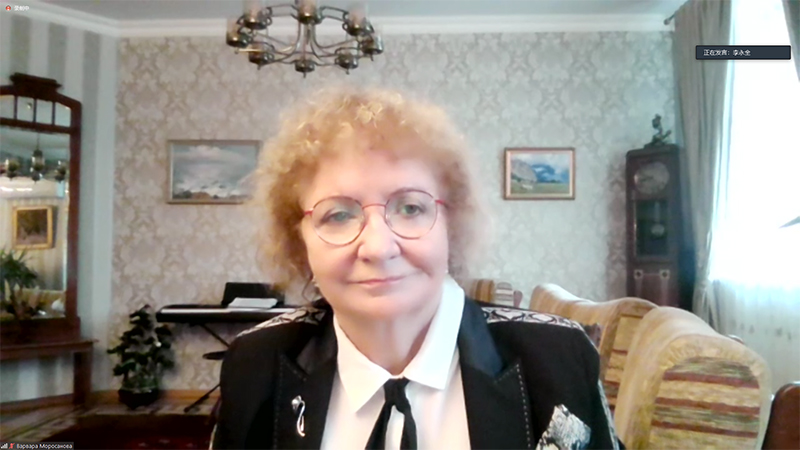 本届论坛特别安排了专家主题报告环节。В.И.莫罗萨诺娃教授以《Осознанная саморегуляция как психологический ресурс самоорганизации жизни в условиях пандемии》(作为疫情中自我建构心理手段的有意识自我调节)为题,详细介绍了自我调节心理学的学科基础、研究方法等相关情况,并向听众展示了疫情期间其团队根据民众对于未来生活的态度进行的一系列调查研究。莫罗萨诺娃教授团队的研究在当下生活和工作压力巨大的社会环境中,对个人如何调节压力、转化负面情绪具有很大的现实意义。