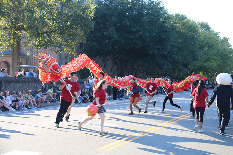 参与花车游行的威廉玛丽大学孔子学院方队由孔子学院工作人员、在校中国留学生和威廉玛丽大学学习中文或爱好中国文化的大学生组成。为了向当地居民呈现出年轻而富有活力的中国龙形象,方队队员在游行正式开始前利用有限时间一遍又一遍的练习舞龙动作,力图实现高度默契使中国龙方队成为游行队伍里亮眼的焦点。