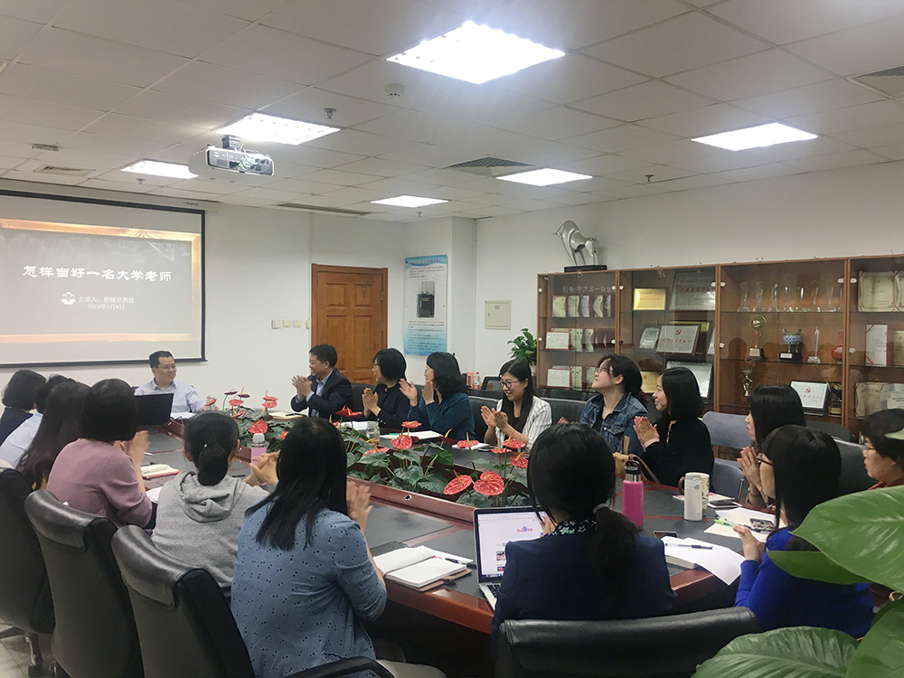 2019年5月8日下午15时,外文学院党委在后主楼1020会议室召开师德师风专题会。学院党政联席会成员、英文系教授程晓堂、青年教师代表参加了会议。会议由党委书记刘娟主持。