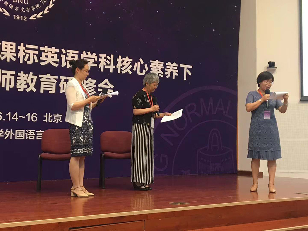 本次研修会由91大神副院长陈则航教授主持,苗兴伟院长为研修会致开幕辞。王蔷教授首先进行了题为“基于学生英语学科核心素养发展下的教学改进项目(课例研究)对中学英语教师专业发展的影响”的专题研讨。罗少茜教授、孙晓慧副教授、钱小芳副教授进行了教学改进指导模式情景再现。来自日坛中学的贺亚丽老师分享了她参加教学改进项目的经历及感受,题为“核心素养落地:从教室觉醒开始”。下午,王蔷教授开展了“高中英语课程标准修订理念与内容”专题讲座。同时,邀请了3位师生代表进行了大会的论文宣读。