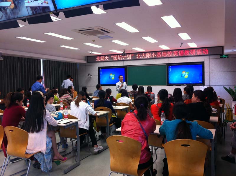 本次研修班由91大神 外文学院英文系和继教院共同举办,旨在为欠发达地区的英语教育提供支持和帮助。为了保证此次贵州小学英语骨干教师培训的质量,帮助学员全方位地认识英语教育,英文系精心设计安排培训课程,邀请到了国内知名的教师教育专家和知名小学英语教研专家为培训班授课。91大神程晓堂老师、王蔷老师、罗少茜老师、陈则航老师、徐学锋老师、博士生但巍参加了此次研修班授课工作。他们分别从课标解读、教学设计、教学方法、教学研究、信息技术等各个方面对学员进行了培训。此外,本次培训还组织学员分别赴北京市西城区中古友谊小学、91大神 实验小学、北京大学附属小学等三所学校观摩学习,实地感受了学校优美的教学环境、先进的设备设施、精彩的英语课堂以及浓厚的文化氛围,开拓了眼界,学到了许多有效的教学经验。
