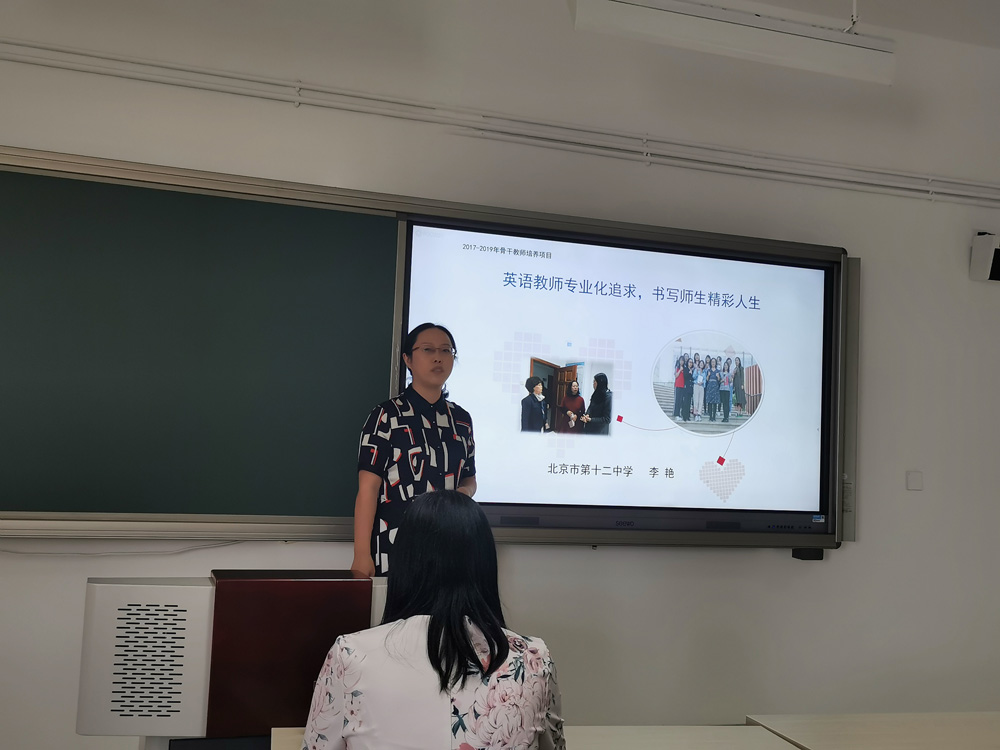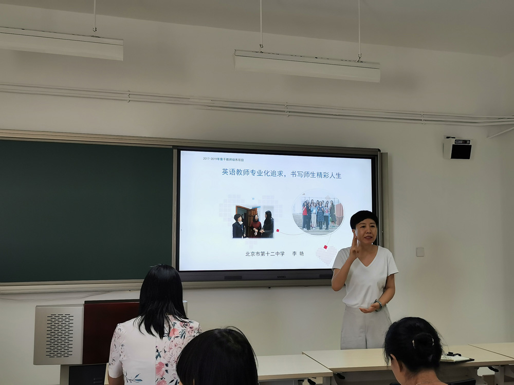 首先,“骨干教师”项目学员北京第十二中李艳老师发表题为“英语教师专业化发展,书写师生精彩人生”的汇报。李老师开展了课内和课外阅读圈融合,研修成果显著,有效激发了学生的学习兴趣,创造以学生为中心的“学堂”,建构一支高水平的英语组团队。研究的幸福之旅,实干彰显担当。