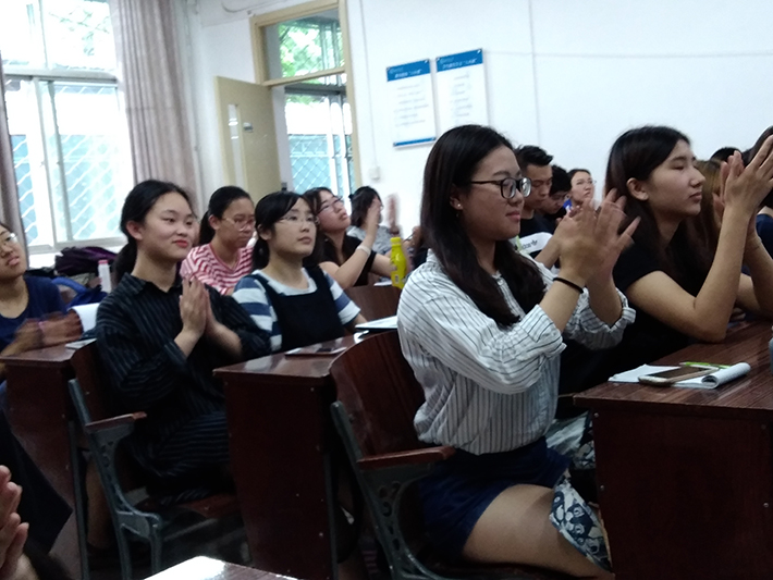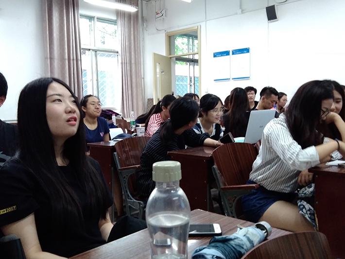 2017年7月4日上午10点,日文系于教二117举行了2017年小学期课程之“跨年级交流与分享”活动。该活动由刘玲老师策划,三年级王蓉同学担任了当日的主持,受邀而来的大三以及研究生前辈共6名同学与一、二年级将近40名同学分享了学习与生活中的心得与体会。