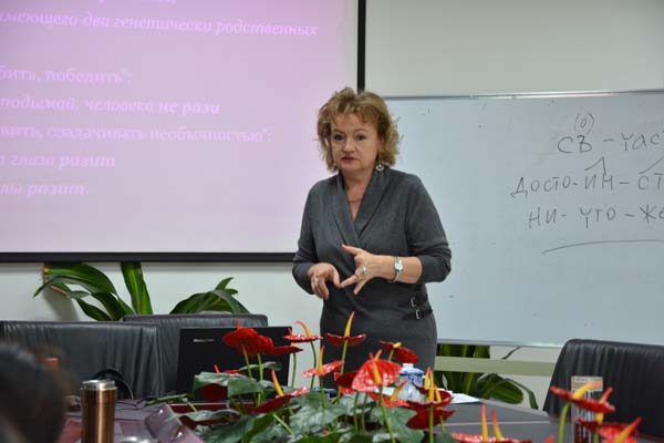 语言世界图景是一个民族精神文化在语言中形成的结晶,是该民族对现实世界的认识在语言中的集中体现。同时,一个民族的语言体现着这个民族灿烂的文化和独特的思维方式。了解一个民族的文化和思维方式对于学习语言有着重要的意义。从12月2日开始,应教育部区域和国别研究培育基地俄罗斯研究中心的邀请,圣彼得堡大学教授、语言学博士塔季扬娜·谢苗诺夫娜·萨多娃(Татьяна Семеновна Садова)女士为外文学院俄语系师生做了为期三天的讲座。塔季扬娜·谢苗诺夫娜主要围绕俄罗斯人的世界语言图景、俄语民间口头创作语言以及俄语语言中所蕴含的哲学思想等问题进行了详细的讲解。