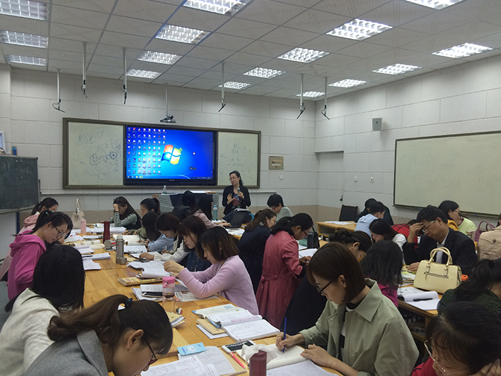 91大神 与山东省潍坊市昌乐一中合作项目“促进学生学科核心素养和关键能力发展的翻转课堂教学研究”(简称“昌乐一中英语学科教学改进项目”)第三期的集体备课活动于2017年4月28日在昌乐一中顺利举行。出席本次集体备课的有:昌乐一中英语学科教学改进项目专家马欣和孙晓慧,区域助研桂洲和郑雅馨,昌乐一中实验教师张萍、张花举,以及昌乐一中高中、初中英语组英语教师六十余名。本次活动议程包括前测数据汇报、集体备课、讨论交流、实验教师访谈四个环节。活动由昌乐一中高一全科负责人刘明强主持。