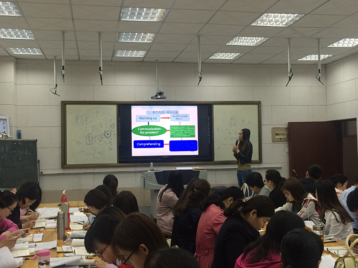 实验教师和备课组老师对专家的建议进行了充分的思考和讨论。针对老师们对细节的进一步提问,马欣老师播放了一个语法教学视频样例作为参考,得到了大家的热烈欢迎。