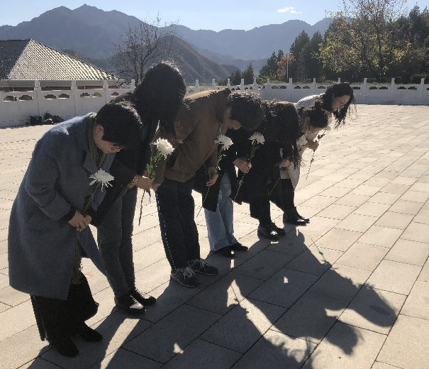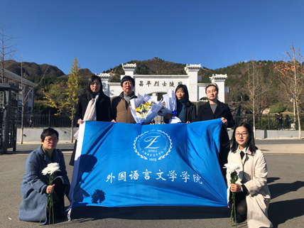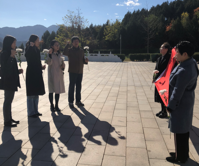 昌平革命历史纪念馆和烈士陵园位于昌平区流村镇西峰山村,主要陈列昌平革命史及烈士事迹,安葬抗日战争、解放战争、抗美援朝等时期牺牲的英烈,包括昌平籍和在昌平牺牲的外地烈士。英文系党支部在支部书记张政老师的带领下,在昌平烈士纪念碑前,面对中国共产党党旗,郑重宣誓,向烈士纪念碑和英烈墙集体默哀和鞠躬并敬献了菊花,随后支部成员参观了昌平革命历史纪念馆序厅、“京华古城燃星火”、“矢志不渝抗敌寇”、“红旗漫舞翻新历”、尾厅等革命历史展览板块。