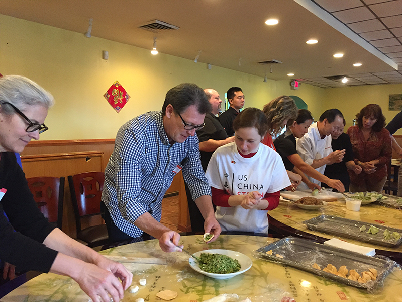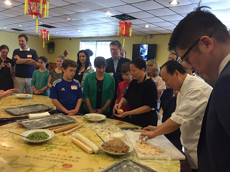 2月25日,威玛孔院协助当地著名中餐厅Peter Chang举办了新年包饺子活动。“中美强基金会”首席执行官John Holden亲临现场并发表讲话,”中美强基金会”青少年大使、2017年全美人文交流奖获得者宝玲担任本次活动的翻译,美国著名中餐厅大厨Peter Chang及其夫人一同教授到场美国民众包饺子。