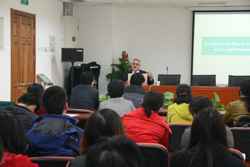 11月2日下午在后主楼914会议室,由外文学院举办的系列讲座邀请到了美国哥伦比亚大学Purpura教授,为外文学院的师生作了题为“Assessing Meaning in Task-based Language Assessments”的讲座。此次活动由罗少茜老师主持,武尊民、孙迎晖、陈则航等多位老师列席了讲座。外文学院的研究生、博士生同学以及访学老师们也都积极参与了本次活动。