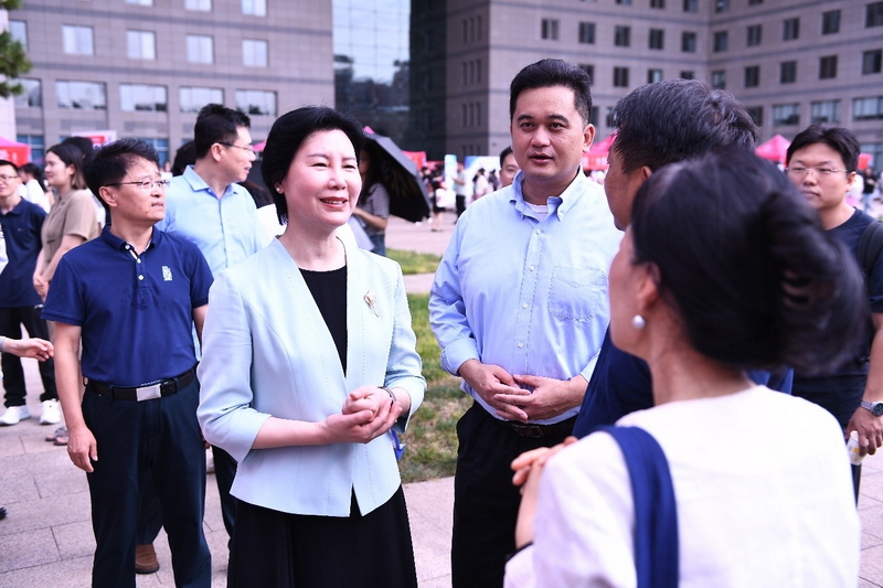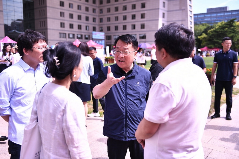 学校党委书记程建平,校长于吉红,副校长汪明,副校长陈兴,党委常委、组织部部长张雁云等校领导在海淀校园迎新现场,亲切慰问今年入学的新生。
