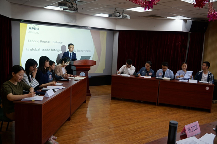 2017年5月6日星期六,2017年ModelAPEC高校选拔赛北师大赛区在后主楼914顺利举行!比赛分为两个赛程。第一轮赛程由自我介绍,APEC客观知识问答和APEC主观知识问答组成。选手们在这一环节精彩的呈现了自己的个人风采,自信的展现了优秀的口语水平和语言表达能力。第二轮赛程为辩论赛。在辩论赛中,无论是正方还是反方,选手们都精彩的陈述了自己的观点。充分展现了选手们的反应能力、语言逻辑思维能力和综合素质。