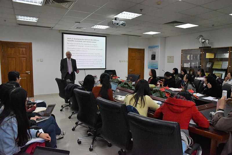 2017年10月31日下午3点30点,外文学院2017年度研究生学术活动月暨“治学·修身”系列讲座(一)在后主楼1020室如期举行。北师大外文学院邀请到卡迪夫大学的Fawcett教授,就目前语言学界的热门话题——Cardiff Grammar,作了一场精彩的前沿学术讲座,吸引了众多外文学院的教师、本硕博学生和访问学者,全场座无虚席。