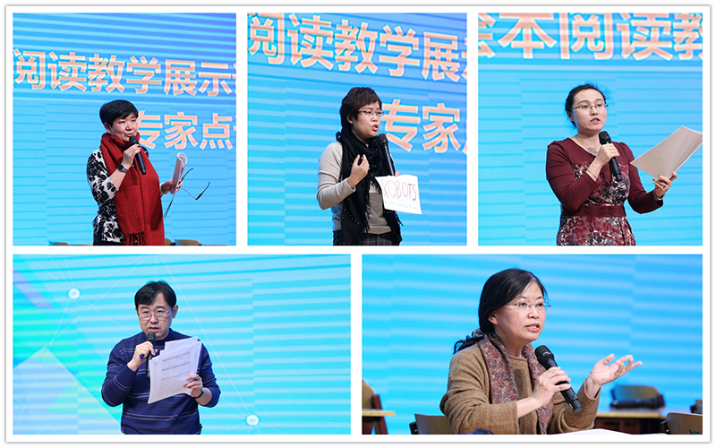 上午9点,绘本阅读教学研讨课正式开始。来自垂杨柳中心小学的杨楠老师、劲松第三小学的普歌老师、通州贡院小学的王晨曦老师率先开讲。下午,来自王四营中心小学的董丽老师、芳草地国际学校世纪小学的李蕊老师带着课堂接踵而至。五节展示课课堂真实生动、活动设计紧凑流畅,令参会的老师们赞叹连连,掌声雷动。随后,其他五位实验老师做了反思汇报,老师们汇报热情,条理清晰,纷纷感谢一年来北师大专家团队风雨无阻、披星戴月下校指导,给他们带来了巨大的变化。