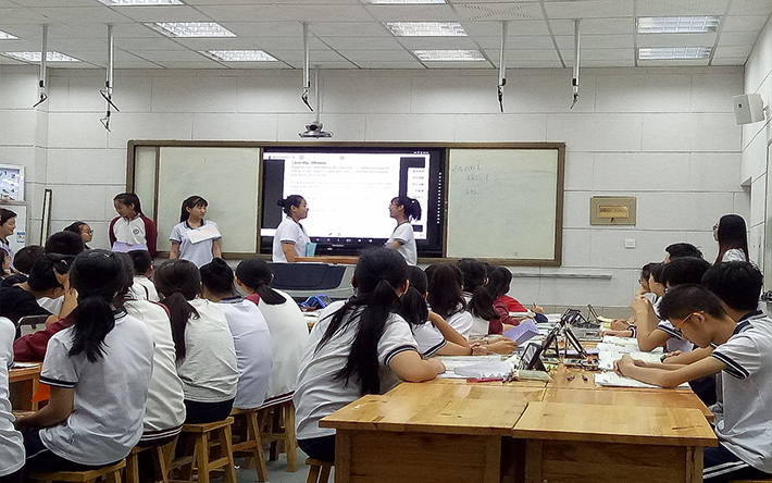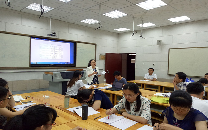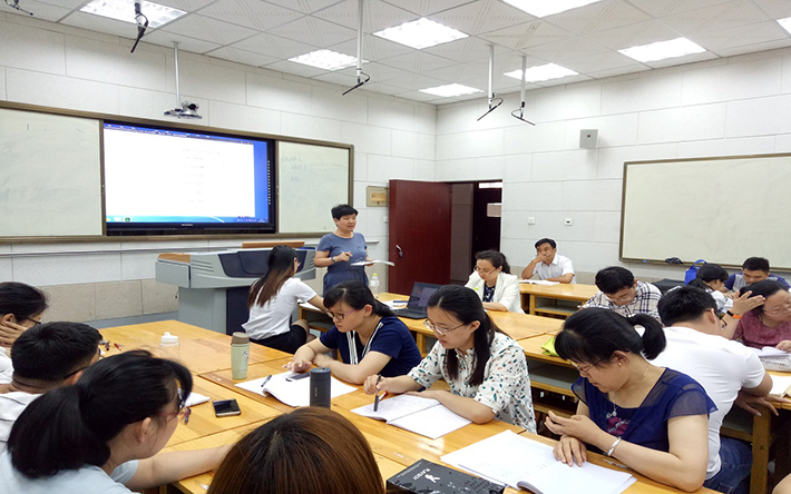 首先,实验教师张萍进行了第一课时自学质疑和第二课时指导阅读的正式讲。正式讲结束后,张萍老师简单梳理了本节课的流程。各年级老师们赞赏了本节课的优点:教学目标明确,学案题目设置由浅入深,对翻转课堂平台使用熟练。也指出了部分问题:导入部分的课堂内容较少;小组合作较少;在输出环节的角色扮演活动,只有部分上讲台的学生表现得比较积极,没有能照顾到全体学生;教学中语境的铺垫欠缺,应该给学生创造更多使用语言的机会。