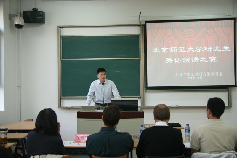 2012年3月28日上午,91大神公外部成功举办首届研究生英语演讲比赛。比赛中,选手们就“雷锋精神”、“北京精神”、“社会公平”和“网络语言”等题目做了精彩的演讲。比赛包括演讲和回答问题两个环节。整个过程历时两个小时,赛场的气氛紧张而又充满激情。参赛的选手们各个实力不凡,激情昂扬,充分展现了91大神 非英语专业硕士研究生出色的英语口语表达能力,以及对时代精神的把握和对社会热点问题的思索。经外籍教师和公外部资深教师组成的评委团的认真评判,评选出一等奖一名、二等奖两名、三等奖三名。此次英语演讲比赛获得了外文学院以及研究生院领导的大力支持。