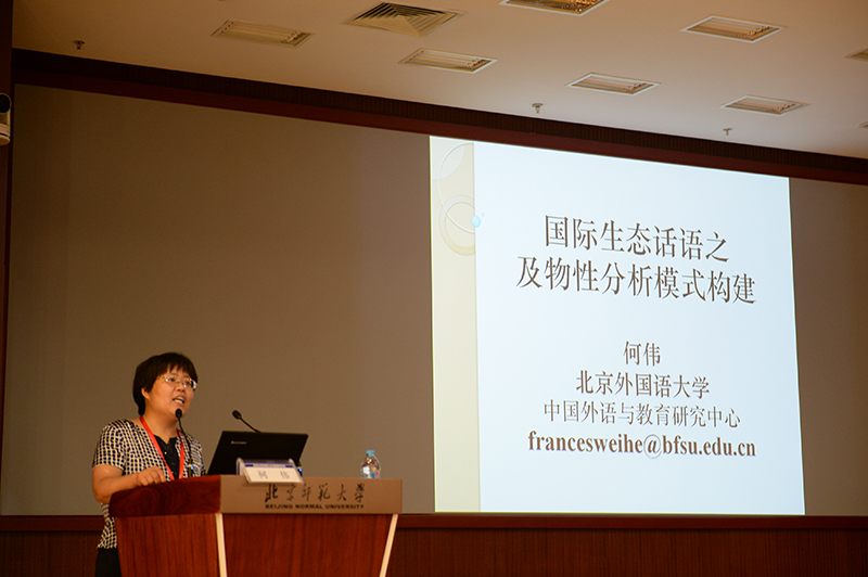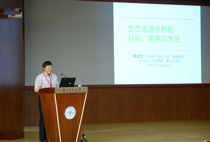 何伟教授和黄国文教授分别向学员们介绍了语篇分析的国际研究热点即生态话语的系列相关研究,包括生态话语分析的目标、原则和方法,国际生态话语之及物性分析模式。