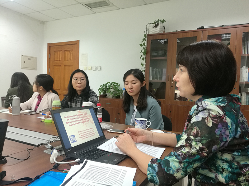 扎列斯卡娅教授在讲座中梳理了从上世纪中叶在中俄远东边境的民间交流到现在的中俄战略友好合作关系以及“一带一路”倡议背景下的国家间、地区间、人民间的各层级合作,并指出在两国合作不断加强的大背景下,留学生层面的交流愈见频繁,中国留俄学生的数量也逐年飞速增长。扎列斯卡娅教授以布拉戈维申斯克国立师范大学国际系的中国留学生为例,多角度、全面地讲述了在俄留学生的生活以及学习现状。
