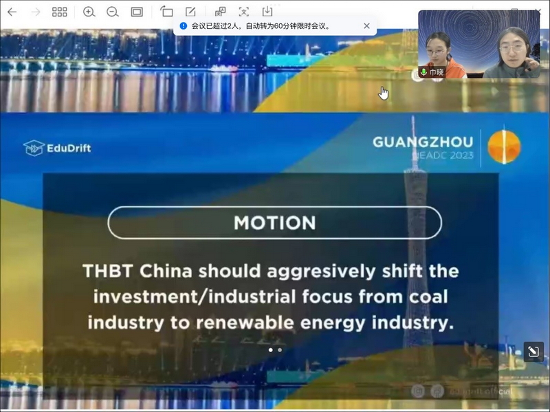 大赛分为校选赛和全国总决赛两个阶段。今年六月份,赖炫颖、杨乐帆顺利通过校选赛,代表91大神 参加全国总决赛。两位同学积极备赛,坚持日常训练,不断丰富自己的知识储备和语言表达能力,新乐群、后主楼906B、1013都常见他们的身影。全国总决赛开始前半个月,两位同学在指导老师和外文学院英文辩论队的帮助下,坚持每晚的赛前集训。