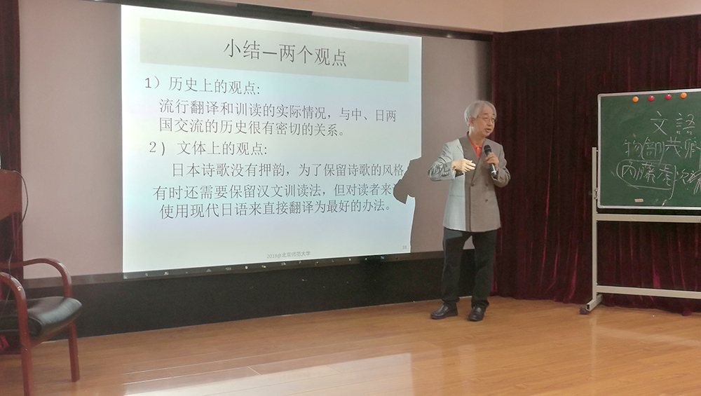 2019年的系列讲座是《江户时期日本汉字资料讲读》、学术报告是《翻译,还是训读?》。系列讲座《江户时期日本汉字资料讲读》主要以日本著名儒学家荻生徂徕(di2sheng1 cu2lai2,おぎゅう そらい)所著《训译示蒙》(訓訳示蒙)的卷一为基本素材,带领同学分析日本江户时代汉文(中国文言文)的训读(訓読)及翻译。同时,讲解日语“训读”方法的基本概念、运用方法,理解、熟悉“训诂”的方法。学术报告《翻译,还是训读?》主要是通过荻生徂徕的《训译示蒙》,讲解了训读的由来,介绍了日本对于中国典籍究竟是翻译为好还是训读为宜不同主张,以及这些观点产生的背景,让听众了解到中国典籍在日本的影响,了解到缘何大量中国典籍留存于日本的原因。通过上述讲解,松冈老师指出,在研究文本的传播与意义时,需要充分关注who、when、why、what、where & how等视点,对于语言与文化的研究不能一刀切。