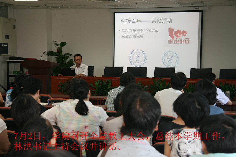 2012年7月2日上午,外文学院在后主楼914学术报告厅召开了例行的全院教工大会。根据学院全院教工大会的制度,学院每学期要召开1-2次全院大会。