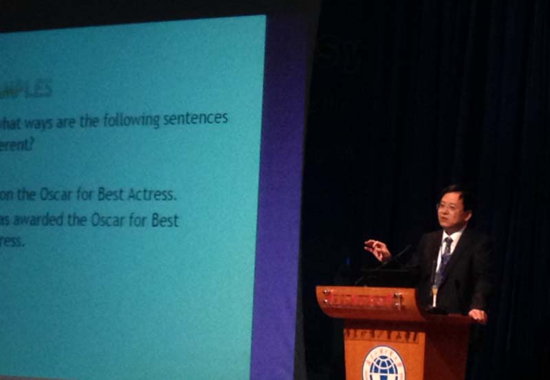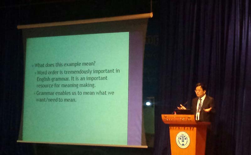 本次研讨会的主题是:英语语言教学的未来:展望与创新(Envisioning and Creating the Future for English Language Teaching and Learning)。所有发言人均为国内外英语教育领域的顶尖学者。程晓堂院长进行了题为“Rethinking Grammar and Grammar Teaching in ELT”的大会主题发言,反思了语法和语法教学在英语教学中的作用,认为英语语法教学的重点应为语法的意义表达功能而非其表面形式。他的发言获得听众好评。