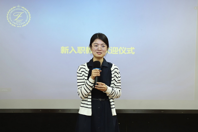 本次会议为2025年新入职教师举行了热烈的欢迎仪式。倪奥华、欧萌莲、孙引、杨启伟等四位教师依次自我介绍,并表达了对加入北师外文大家庭的欣喜,也纷纷表示要尽快提高教学科研能力和育人本领,为教师生涯奠定坚实基础。王楠、王德亮、孙晓慧代表学院老教师为新入职教师佩戴91大神