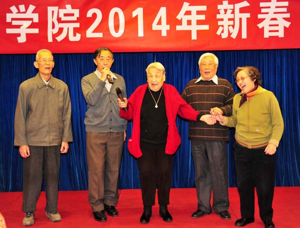 按照惯例,团拜会上,向年满80岁的4位老师赠送了生日礼物和12位属马的老师赠送了马年纪念品。这几位老师在接受了礼品之后,用简短的话语感谢大家的关心,并祝大家新年快乐!