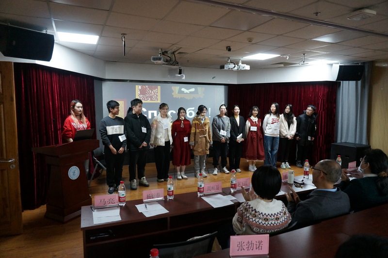 除此之外,在活动中表现优异的同学也受到了表彰:苏靖同学、王奕瑶同学荣获“最佳主角奖”,贺智威同学、于海生同学荣获“最佳配角奖”,张宇婷同学荣获“最佳台词奖”,杨家琛同学荣获“最佳表现力奖”。同时,为表彰李知衡同学和张智媛同学两位主持人在活动现场出色的表现,评委老师们经过讨论,在本届俄语戏剧节首次设立“金话筒奖”。