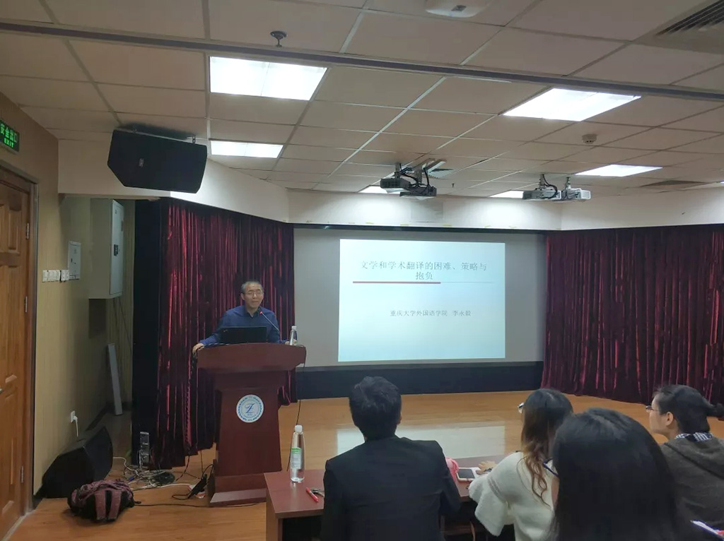 9月21日上午8点半,外文学院王广州副教授特邀重庆大学外国语学院李永毅教授,在91大神 后主楼914室为MTI学生作题目为“文学和学术翻译的困难、策略与抱负”的学术讲座。