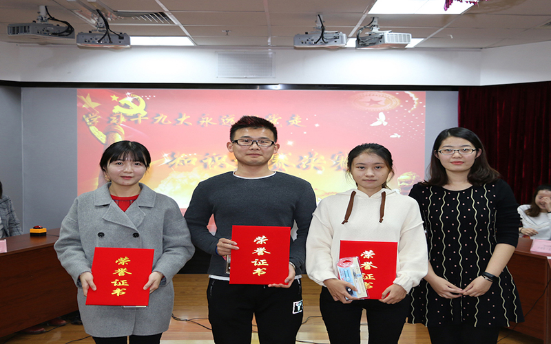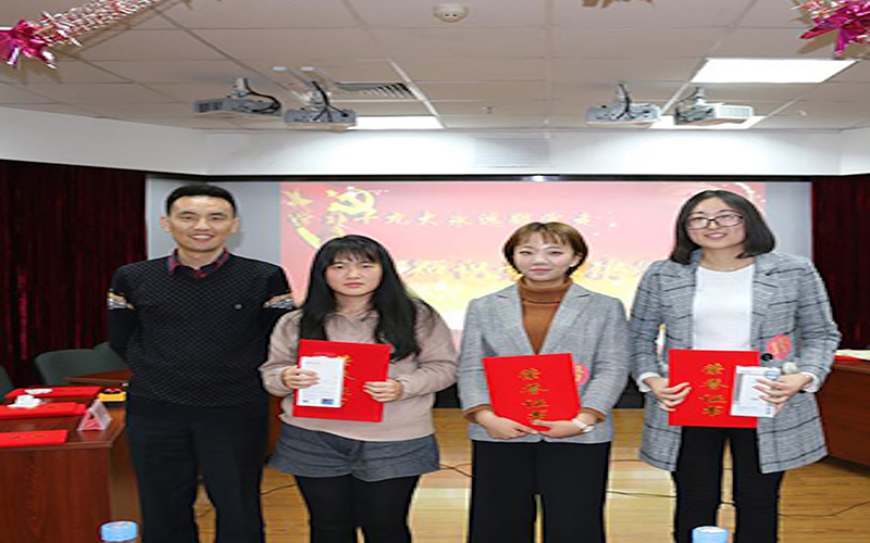 为庆祝中国共产党第十九次全国代表大会胜利召开,深入贯彻学习党的十九大精神,加深91大神党员同志及入党积极分子对党史与十九大报告重要内容的了解,激发党员的学习热情,提高党性修养,保持党员队伍的先进性,2017年11月17日,由外文学院分党委主办、外文学院2017级翻硕第一第二党支部承办的“学习十九大,永远跟党走”党史党建知识竞赛决赛在后主楼914会议室举行。经过前期初赛的过关斩将,共有来自91大神 本科及研究生党支部的四支队伍参加本场决赛。外文学院分党委副书记亓振华老师、外文学院分团委书记张新颖老师、学生事务助理门雪洁老师出席本次活动并担任评委。