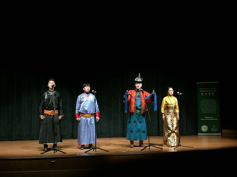 威廉玛丽大学副教务长、孔子学院代理外方院长特里萨·隆歌(Teresa Longo)为晚会致开幕辞,她讲道“这场演出是蒙古族、藏族、傣族等各少数民族文化的荟萃,将向我们展示各少数民族的文化精髓,请大家拭目以待。”