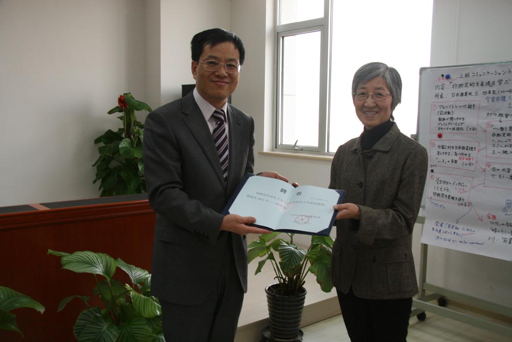 研讨会结束前,外文学院院长程晓堂教授,向东京学艺大学的谷部弘子教授、埼玉大学的小出庆一教授颁发了91大神 客座教授的聘书,向东京学艺大学的谷部弘子教授颁发了外文学院日语教育教学研究所顾问的聘书。