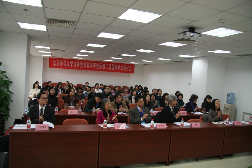 来自日本的东京学艺大学、埼玉大学、北海道大学、山口大学、日本国际交流基金北京文化中心的专家学者,在北京执教或工作的部分日籍教师,来自国内上海外国语大学、人民大学、北京日本学研究中心、北京第二外国语大学、北京工业大学、华中科技大学、福州大学、贵州大学、人民教育出版社等20多所大学或研究部门的专家学者近70人参加了本次研讨会。