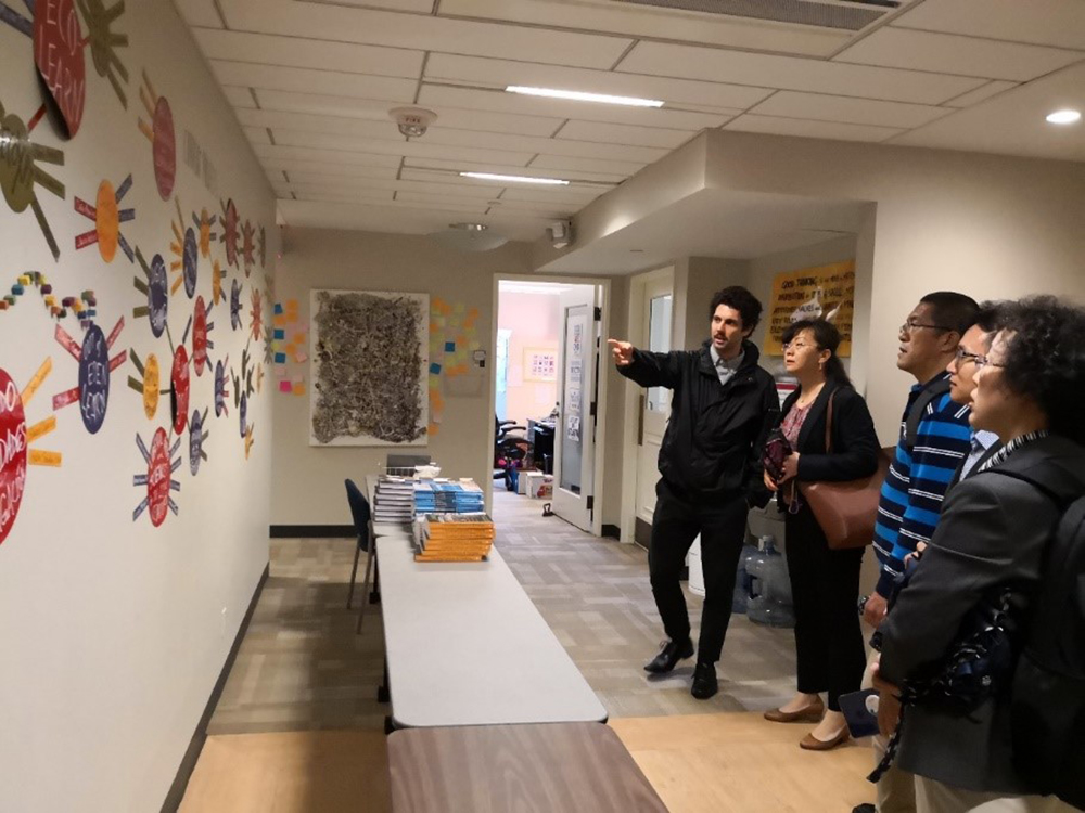 代表团首先访问了哈佛大学教育研究生院。院方代表、项目负责人Dr.Devon Wilson博士热情接待了我方代表团成员,并详细介绍了教育研究生院的创办和发展历程,分享了该院的科研、教学成果以及Project Zero项目的进展情况。代表团对哈佛大学教育学院的课程体系和培养学生模式进行了详尽的了解,也向对方介绍了北师大英语课程的课程体系和教改成果。随后代表团与教育学院的Prof.Veronica教授进行了座谈,双方回顾了近年来的合作交流情况,并商讨了未来可能开展的合作。