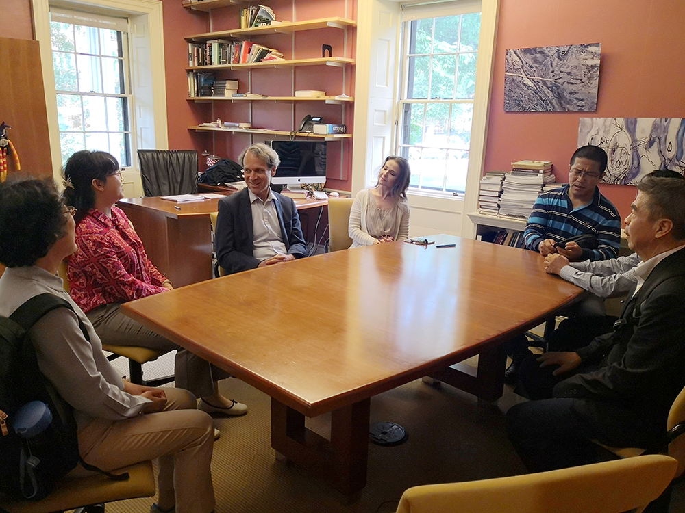 随后代表团赴哈佛大学比较文学系与系主任David Damrosch教授等比较文学系教师进行会谈。David Damrosch教授对91大神代表团的到访表示热烈欢迎,并对两院间的合作表达了浓厚的兴趣。双方探讨了学生短期交流,博士生及访问学者的访学项目,承办国际学术会议等多种合作的可能性,并就相关事宜达成了初步的合作意向。