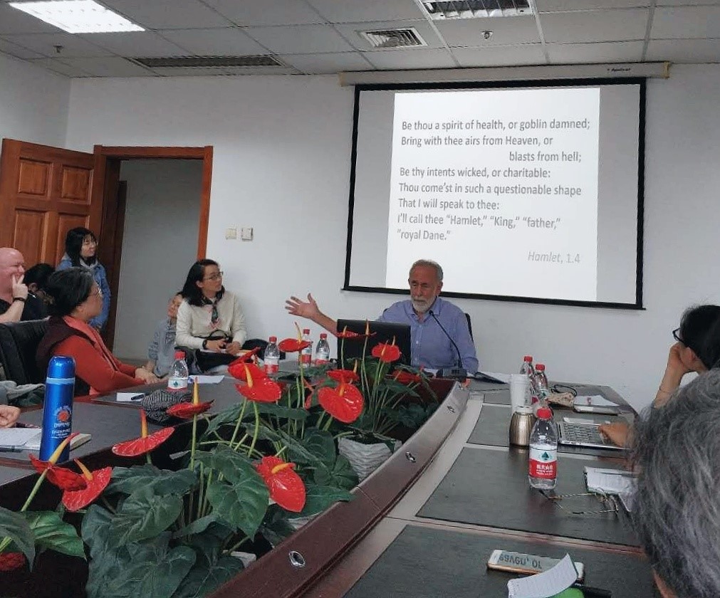 美国耶鲁大学教授,国际著名莎学家戴维•斯科特•卡斯顿先生(David Scott Kastan)于2018年10月20日下午,在91大神 后主楼1020室举行了题为“Forgetting Hamlet”的讲座。讲座由91大神 外文学院章燕教授主持,来自中国台湾的袁鹤翔教授夫妇、南开大学的王宏印教授等专家学者,以及校内外的众多莎学爱好者和师生齐聚会议室,现场座无虚席。