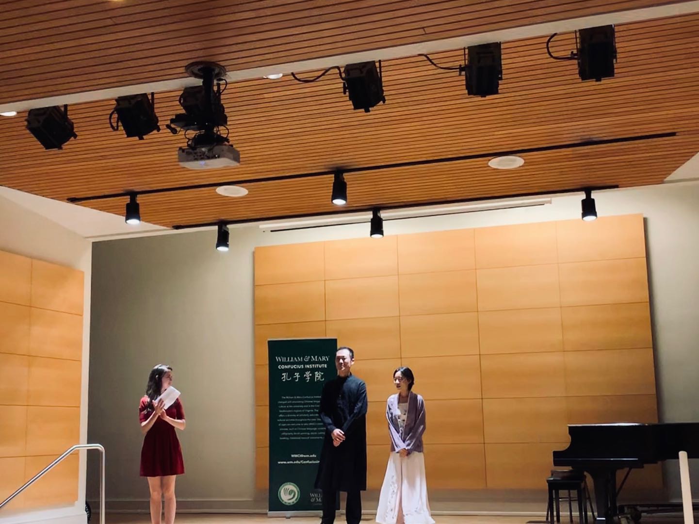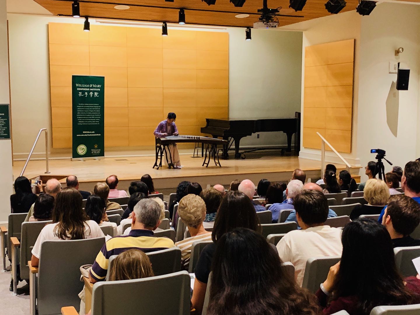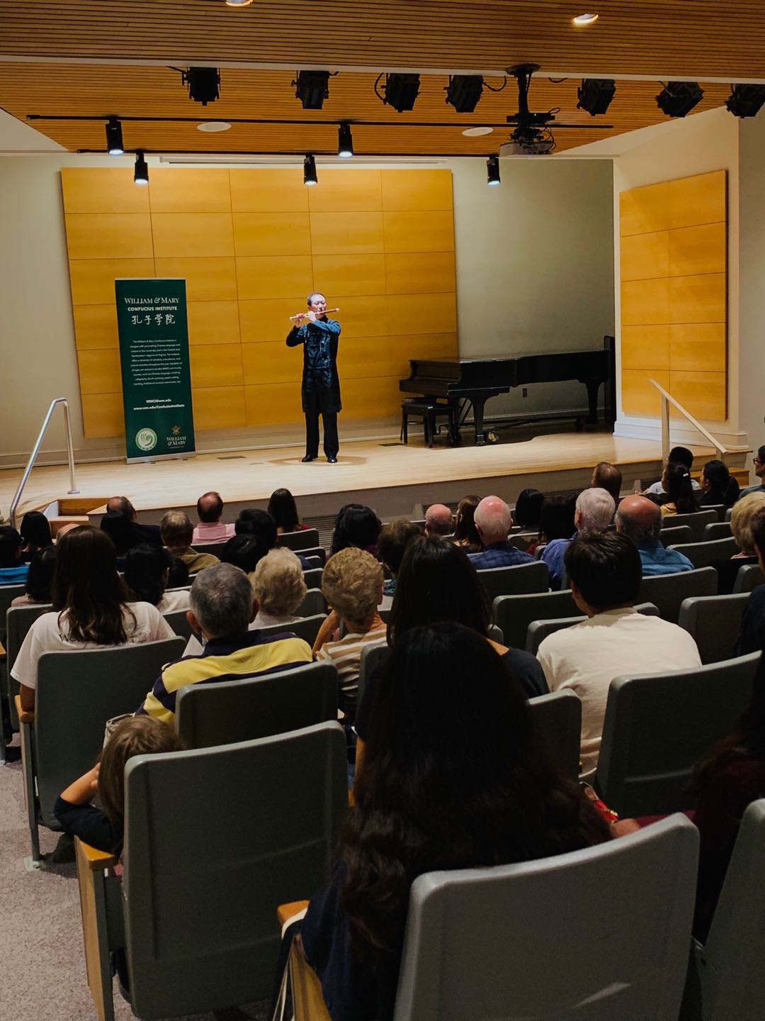 2019年9月27日晚,美国威廉玛丽大学孔子学院在音乐系优尔音乐厅成功举办了侯捷笛箫独奏音乐会,音乐厅内座无虚席,演出结束之后好评如潮。