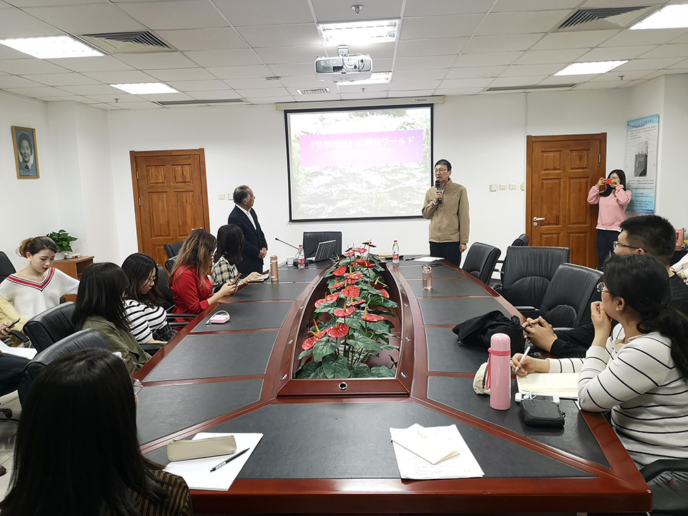 公开讲座以“《竹取物語》与神仙世界”为题,通过复原平安前期叙事文学作品中共有的“神仙世界”,指出对中国神仙思想的接受吸纳是该作品成立的重要文化背景,进一步否定了《竹取物語》取材于《斑竹姑娘》的学界旧说。在此基础上,渡边教授还讲述了日本固有文化与外来汉文化相碰撞与融合的特点。讲座采用图文搭配的方式给听众留下了深刻的印象。