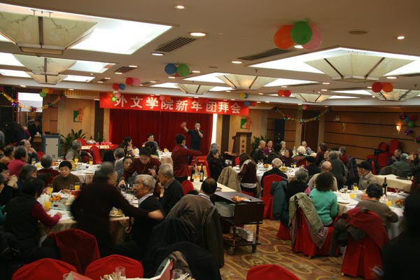 2011年12月27日,外文学院按惯例举办离退休教师新年团拜会迎接即将到来的2012年。团拜会在京师大厦宴会厅举行。