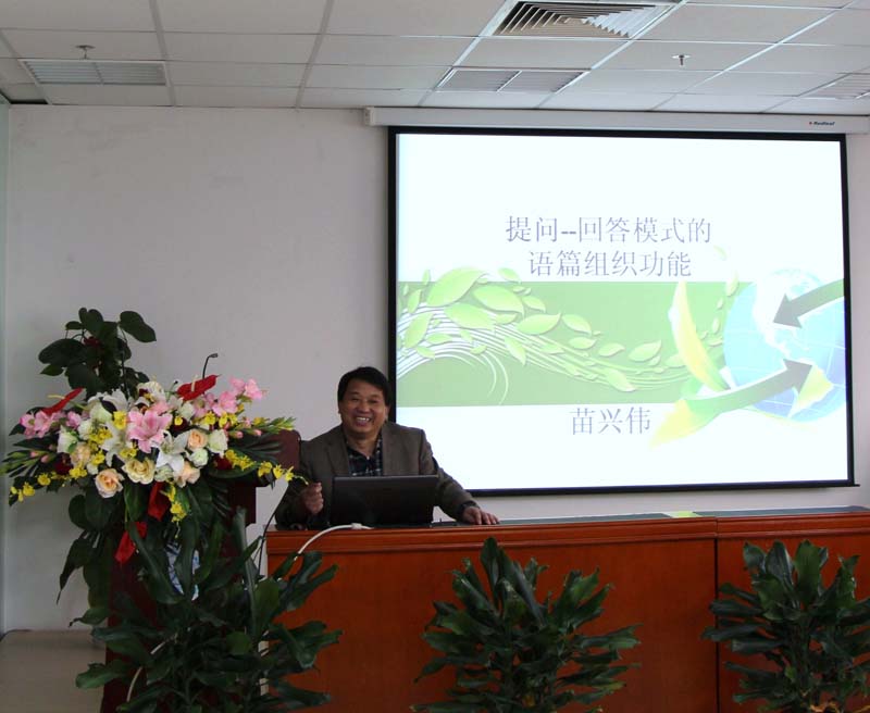 首先,彭宣维教授简要介绍语言学沙龙的发起缘由及筹备工作,鼓励大家积极参与讨论,并提出对沙龙的期望。其后苗兴伟教授做了本沙龙的第一次主题报告,题为“提问—回答模式的语篇组织功能”。他在Michael Hoey提出的语篇模式基础上,探讨书面语篇中提问—回答模式的语篇组织功能,包括信息标示功能、话题导入功能和话题扩展功能。