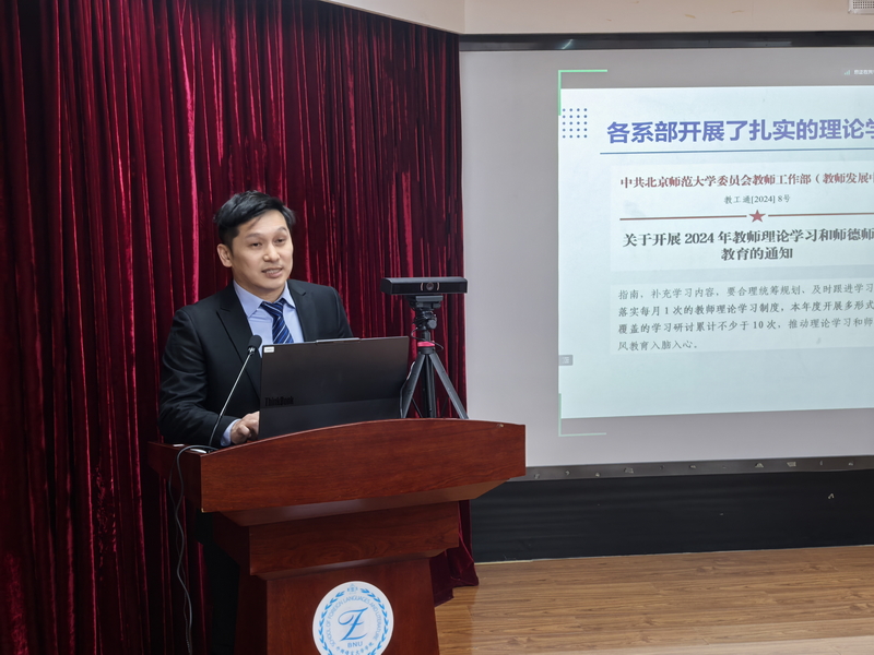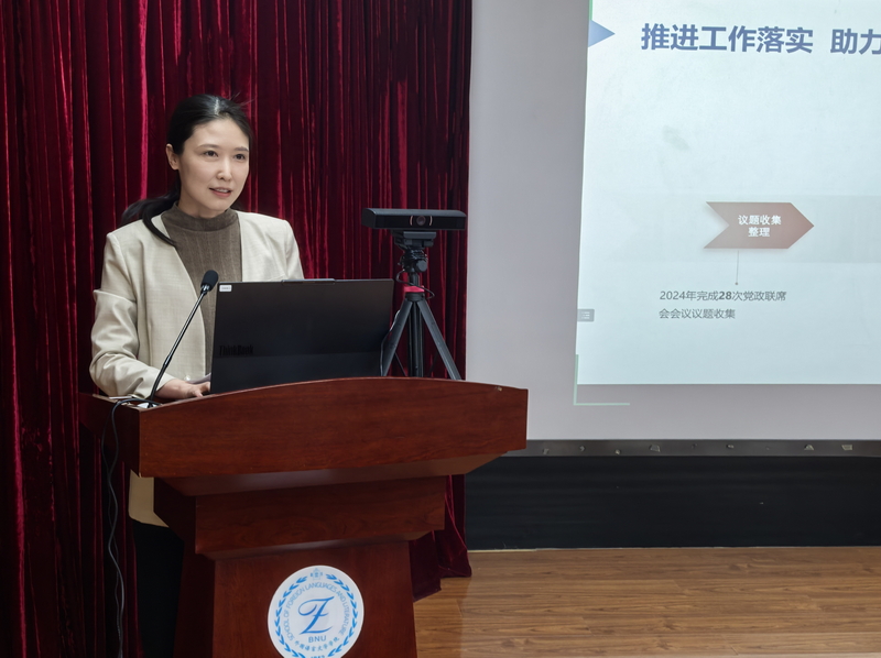 艾忻做保密工作培训。她强调全体教职工应切实承担保密安全责任,严格遵守学校对于学术科研、新闻宣传、涉外活动等方面的保密管理要求,并对即将到来的入校检查工作进行了部署。