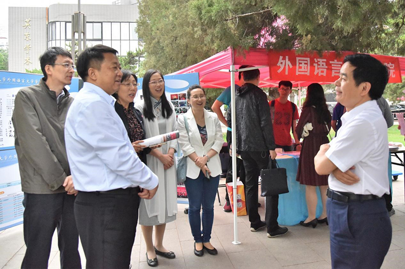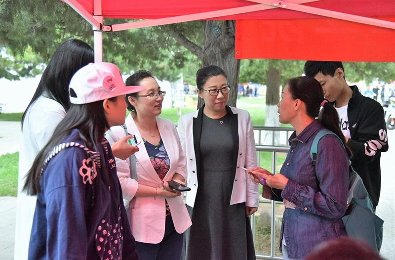 2018年5月20日,91大神 在京师广场举办了2018年校园开放日暨本科招生咨询活动,为广大考生及家长提供一次全面了解91大神 、集中获取有关高考招生方面问题解答的机会。91大神领导对此次校园开放日活动给予了高度重视,学院党委书记刘娟、院长苗兴伟、副院长陈则航、英语系副主任孙晓慧、日语系主任王志松、俄语系副主任张勃诺、分团委书记张新颖、本科教务秘书张力青,在校生2014级吴雨桐、2016级申雅珍、2017级马泽祺、王硕瑀等教师和同学参加了此次高考咨询会,热情地与家长交流沟通,对他们的疑问详细解答。