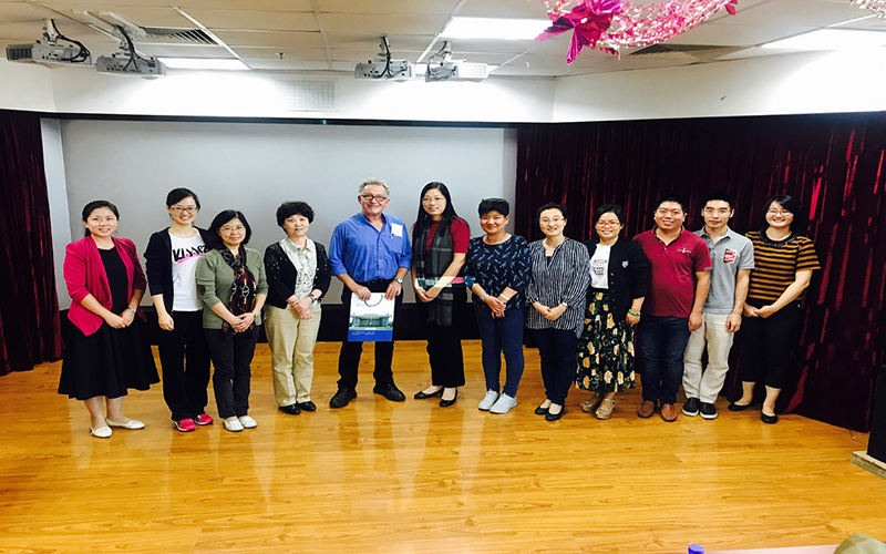 工作坊开始,王蔷教授首先欢迎Martin博士再次回到北师大,原来二十几年前Martin曾在北师大任教,与钱瑗教授、王蔷教授同事,是英语教学专业方向的硕士项目奠基人之一,也曾是程晓堂教授的老师。台下师生听后对Martin博士鼓掌表示敬意,并产生一种亲近熟悉感。随后王蔷教授介绍了Martin作为教师、教师教育者拥有三十多年的国际教学和培训经验,他的研究领域主要集中在英语教学课程改革的实施、特别是改革利益相关者们如何获得支持来一起以适合其环境的方式实施改革;他在这个领域撰写了数本著作、发表了十几篇论文和著作章节。最后王蔷教授展示了Martin赠予的一本今年出版的著作” The teacher education planning handbook”。
